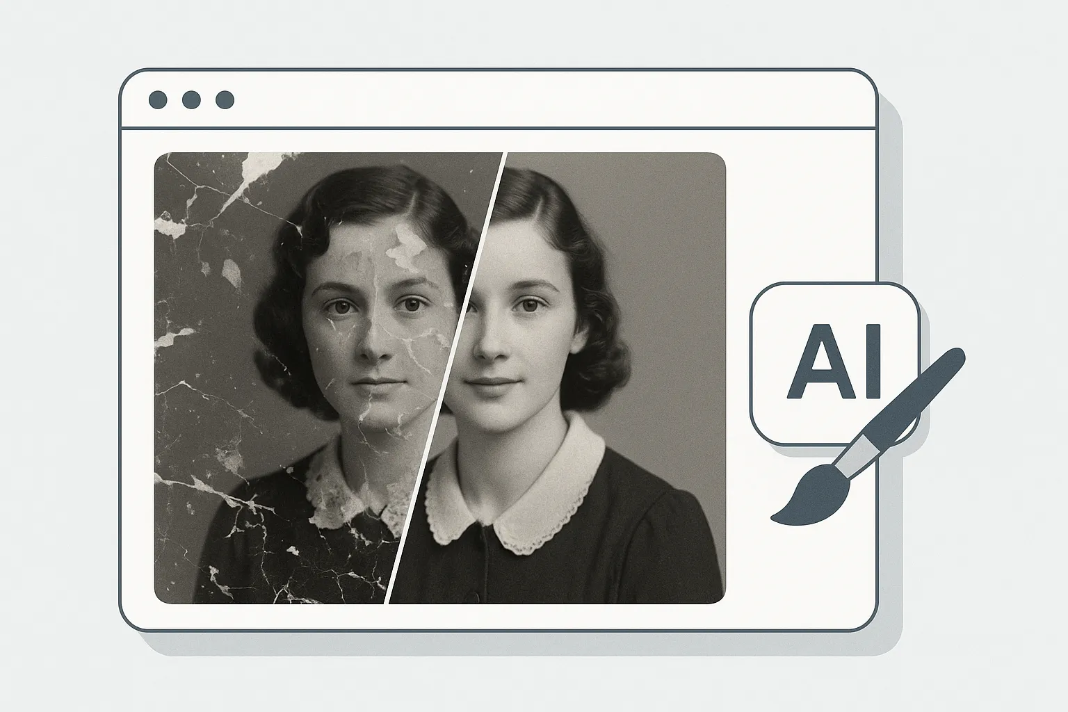 AI Inpainting photo restoration example